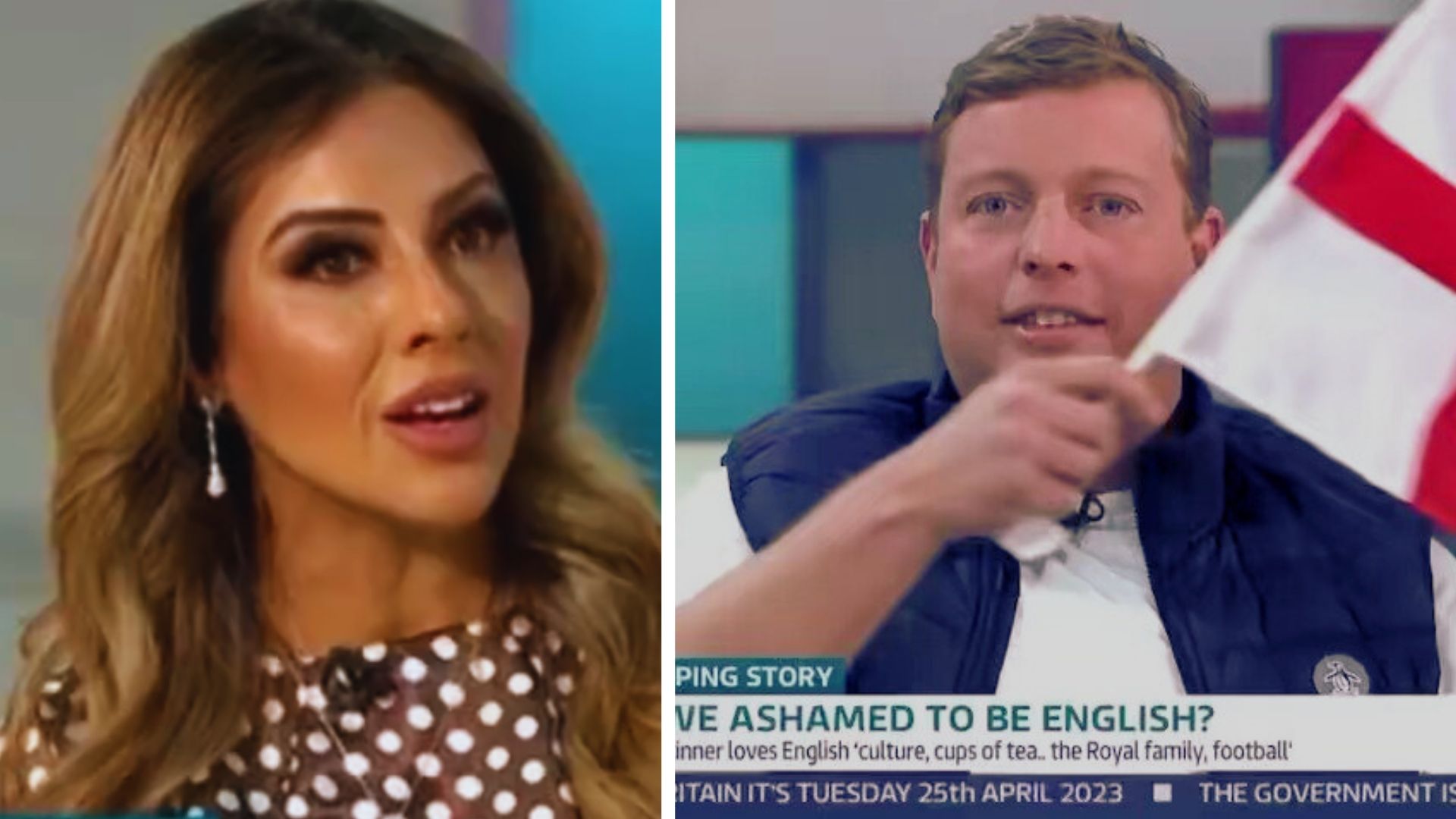 The former Big Brother contestant was involved in a heated debate with former The Apprentice contestant Thomas Skinner and GMB presenters on the topic: ‘Are we ashamed to be English?’.