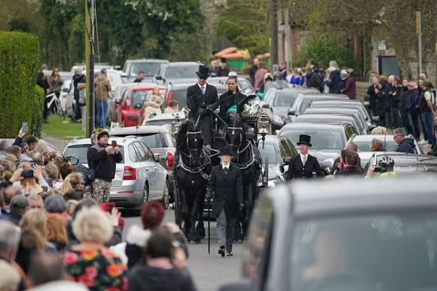 A horse-drawn carriage slowly made its way through his home village of Aldington to St Rumwold’s Church in nearby Bonnington, Kent.