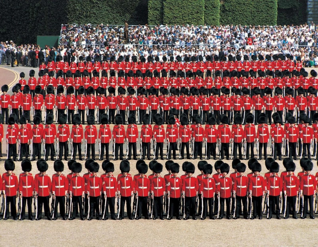 The Trooping of the Colour is a ceremonial event held annually to celebrate the monarch’s birthday. It’s also known as the Sovereign’s Birthday Parade and takes place in London with the monarch joining a procession of around 1,200 soldiers and musicians and more than 200 horses.