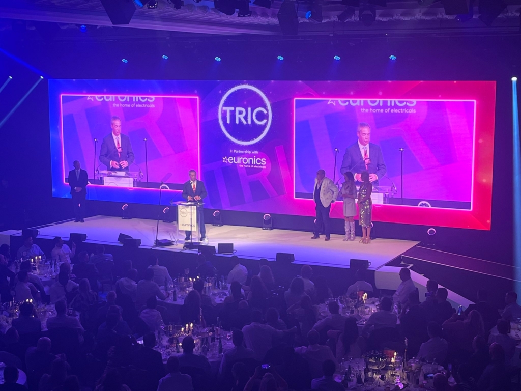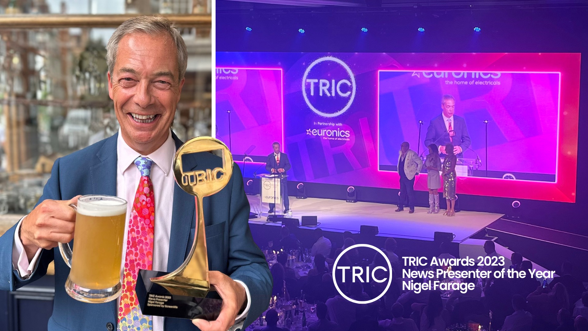 Farage shrugged off boos from the audience as he won the gong at the TRIC Awards in partnership with Euronics on Tuesday in London.